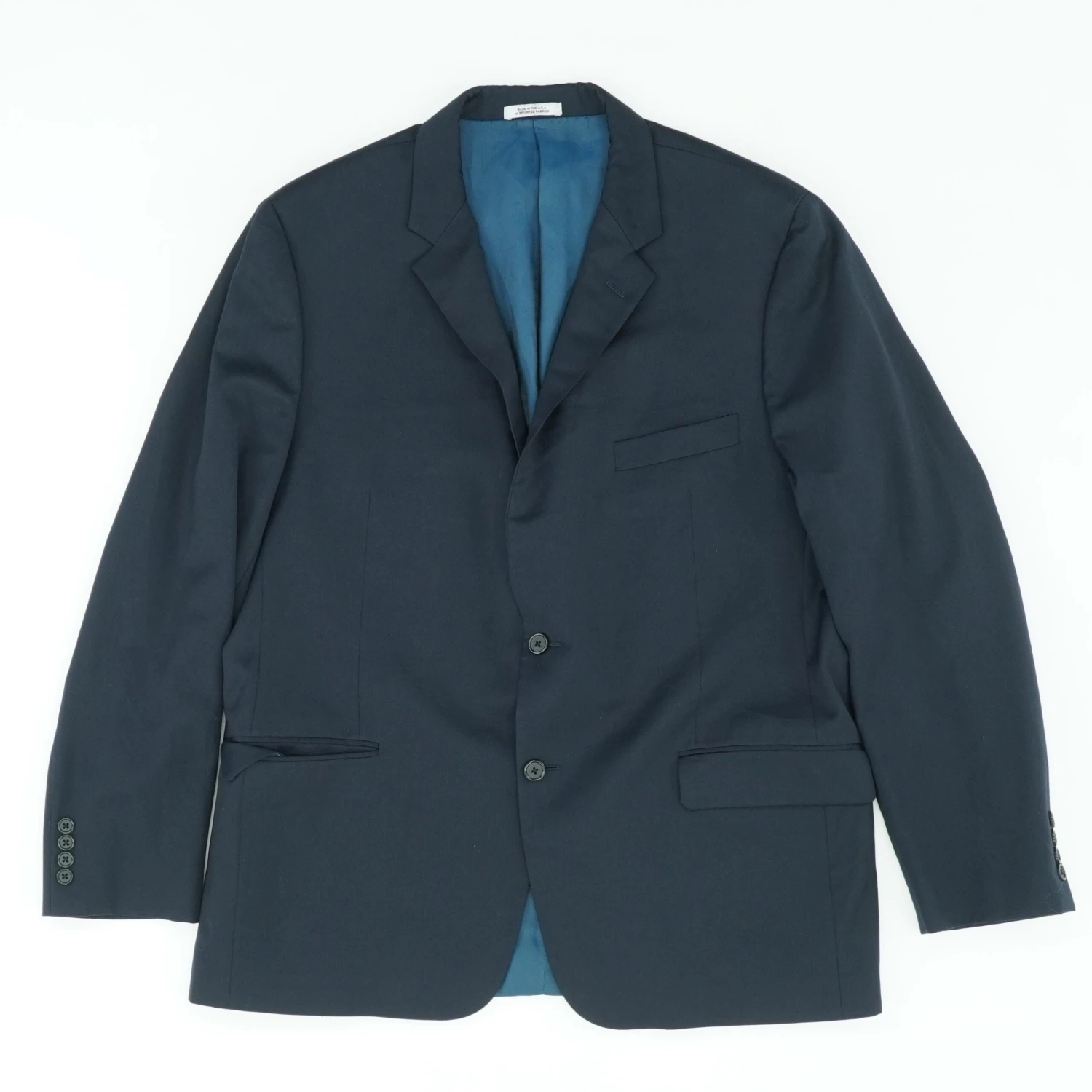 Impeccable suit jacket constructed from wool. Wool. Dry clean. Made in USA.