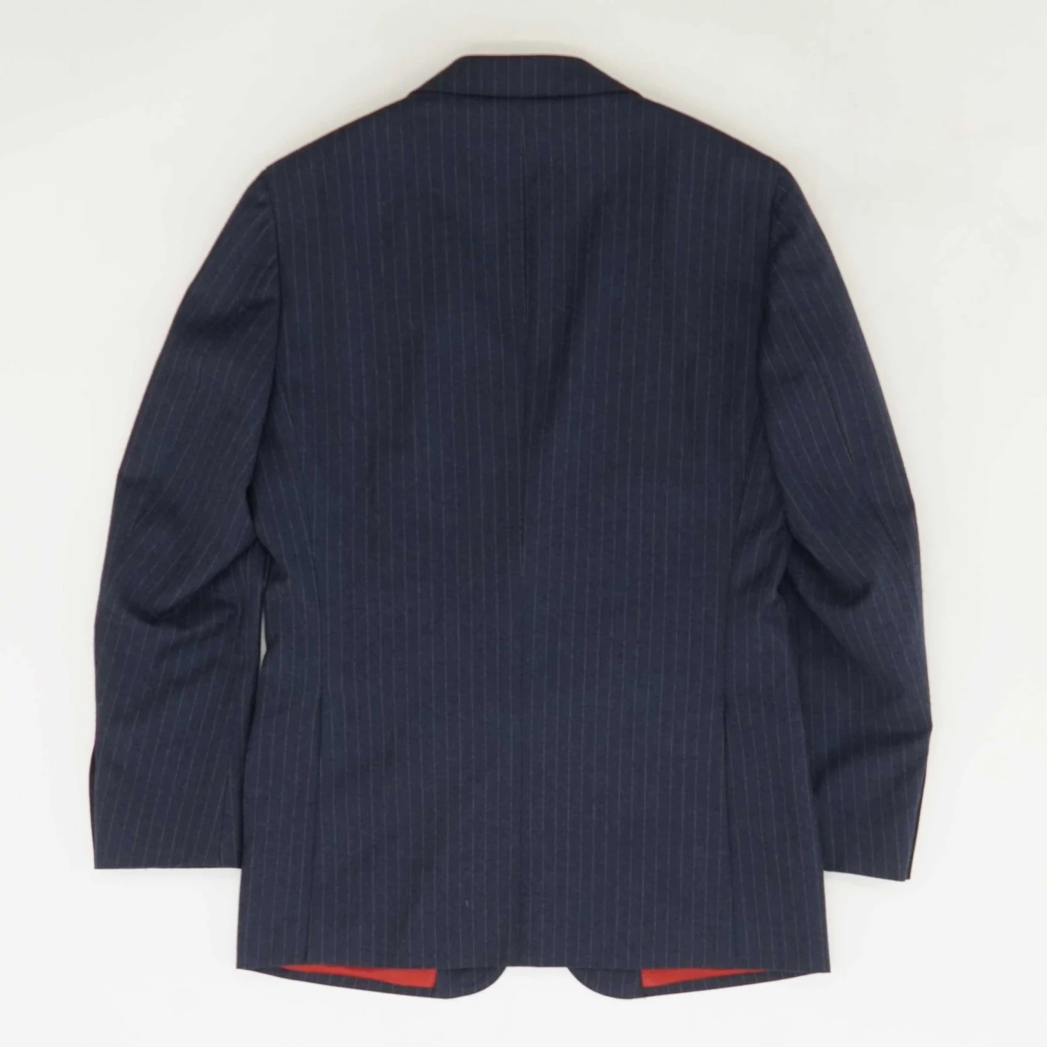 Tailored to a slim fit, this classic striped navy Havana suit jacket features jetted pockets and a natural shoulder.