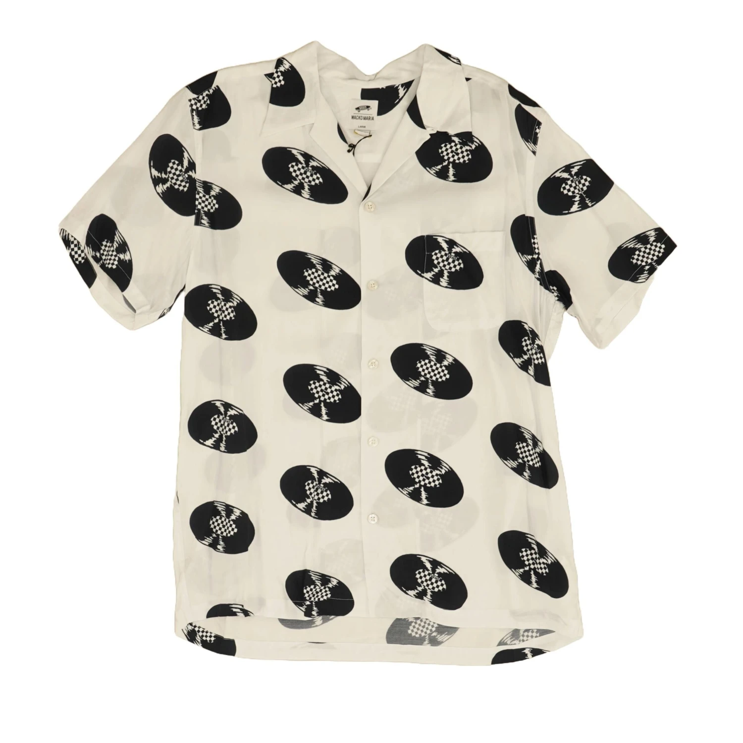 Vault by Vans and Tokyo-based label Wacko Maria continue their music-inspired collaboration with this white short-sleeved shirt accompanying the highly-anticipated Classic Slip-On. Equipped with a smooth camp color and printed Vinyl records all over, the Rayon-made shirt is finished off by a chest pocket. – Vans Shirt x Wacko Maria White – Short sleeves – Button closure – Chest pocket.